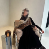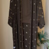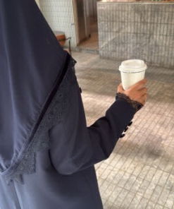عبايه كريب مدموج معها خام المخمل باللون الكحلي